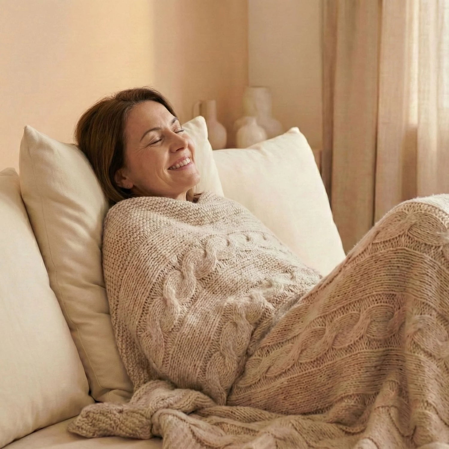 Ja. Die abgestimmte, rhythmische Stimulation aktiviert Nervenbereiche, die zur Muskelentspannung beitragen, die Ausschüttung von Endorphinen fördern und mentale Anspannung reduzieren. Für viele Frauen fühlt es sich wie ein ruhiger Moment der Entspannung und der Verbindung mit sich selbst an.